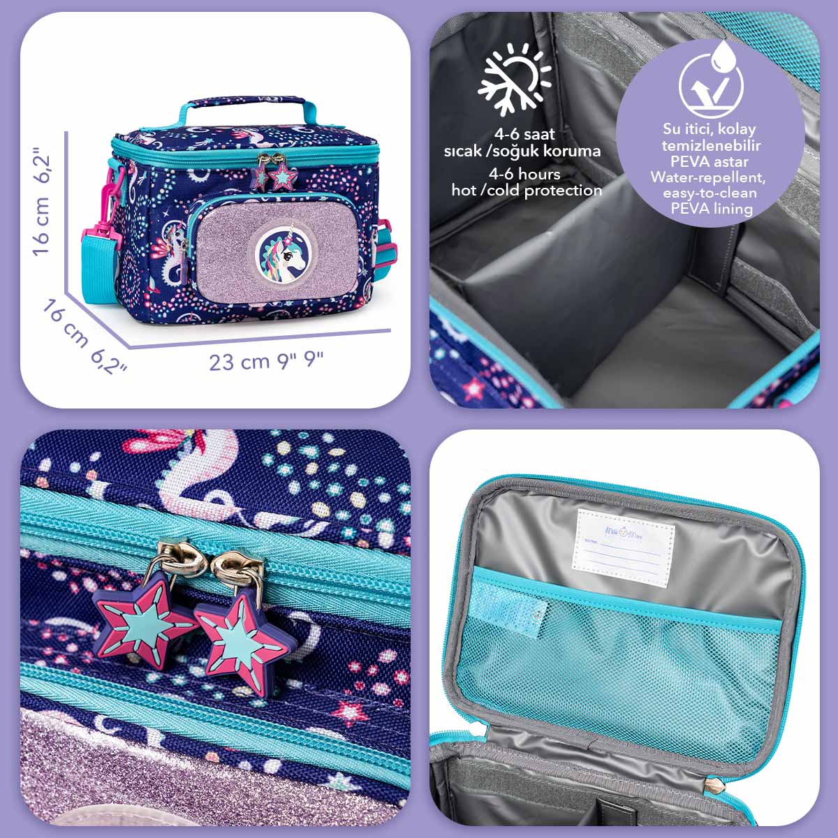 Isı yalıtımlı iç yapısı sayesinde yiyecek ve içeceklerin sıcaklığını uzun süre korumaya yardımcı olurken; Milkyway koleksiyonu karakterlerinden Ayris deseni, çocukların beslenme saatlerini keyifli hale getirir.