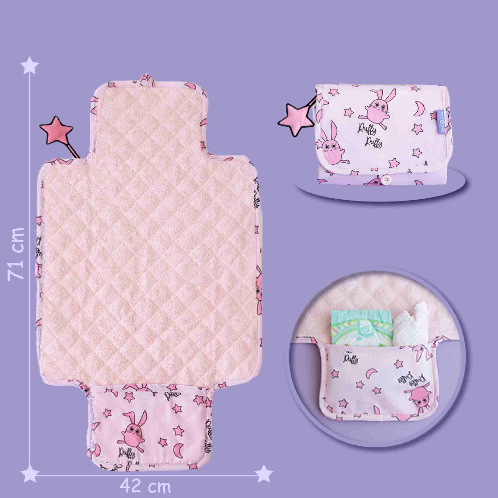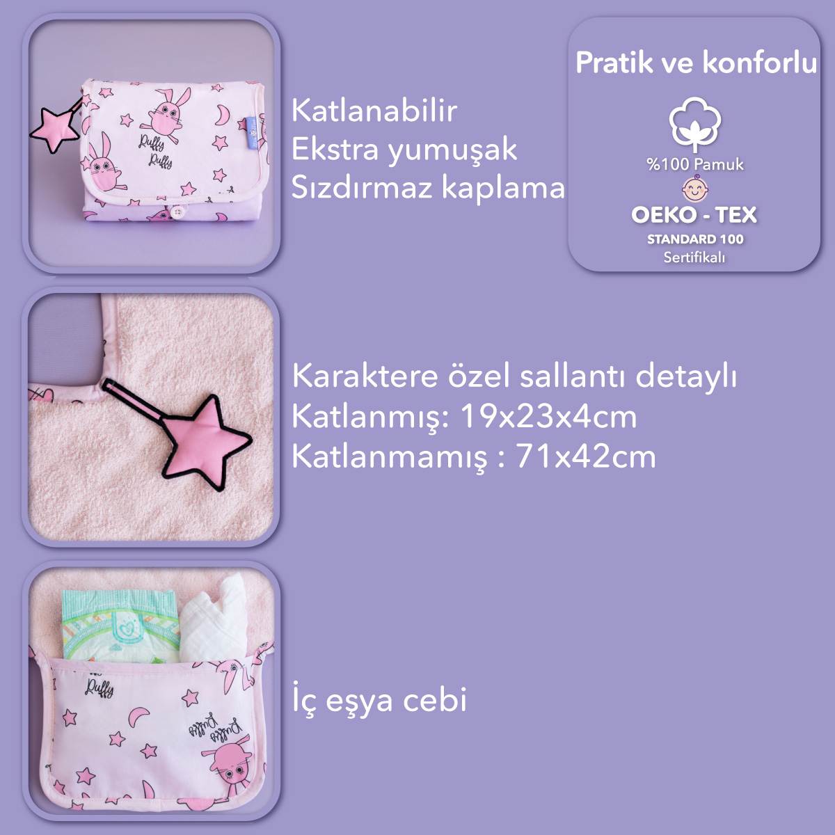 Pembe Çançin desenli sevimli ve pratik alt değiştirme örtüsünde sarkan Yıldız detayıyla bebeğinizin altını değiştirmek çok pratik ve eğlenceli bir oyuna dönüşebilir.